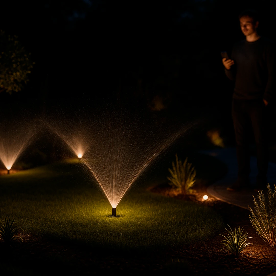 Irrigação e iluminação automatizadas para um jardim sempre impecável.
